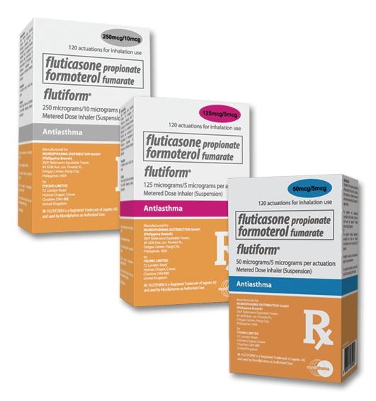 Wheezing and shortness of breath. Home Respiratory Tract Agents Asthma COPD Medications FLUTIFORM 250MG10MG INHALER FLUTIFORM 250MG10MG INHALER. 125mcg5mcg 120 dose cfc free.